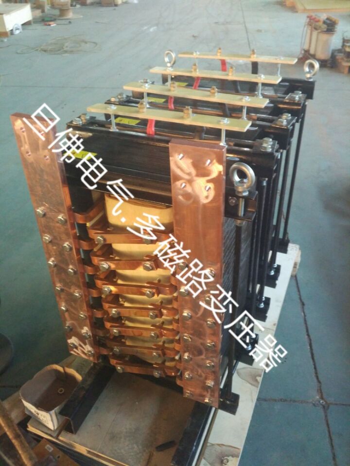 多磁路變壓器把一種由某幾個分離磁路組合的變壓器與容量為輸出容量的1/N的無級調(diào)壓器配套使用,即能擴(kuò)大容量幾倍,實(shí)現(xiàn)大容量連續(xù)有載調(diào)壓,這種特殊變壓器稱為多磁路調(diào)壓變壓器。 采用一套多磁路調(diào)壓變壓器組可進(jìn)行單相試驗(yàn),采用三套同樣的設(shè)備,則可進(jìn)行三相試驗(yàn)。試驗(yàn)系統(tǒng)需要大容量的無級別調(diào)壓裝置,以適應(yīng)大中小型低壓電器的發(fā)熱試驗(yàn),動作符性校正和動熱穩(wěn)定等試驗(yàn),多磁路調(diào)壓變壓器即可滿足試驗(yàn)的需要。